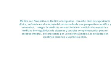 Ofrezco un espacio de atención médica donde la escucha y el acompañamiento son esenciales, uniendo medicina convencional, medicina homeopática con terapias complementarias para favorecer tu bienestar.